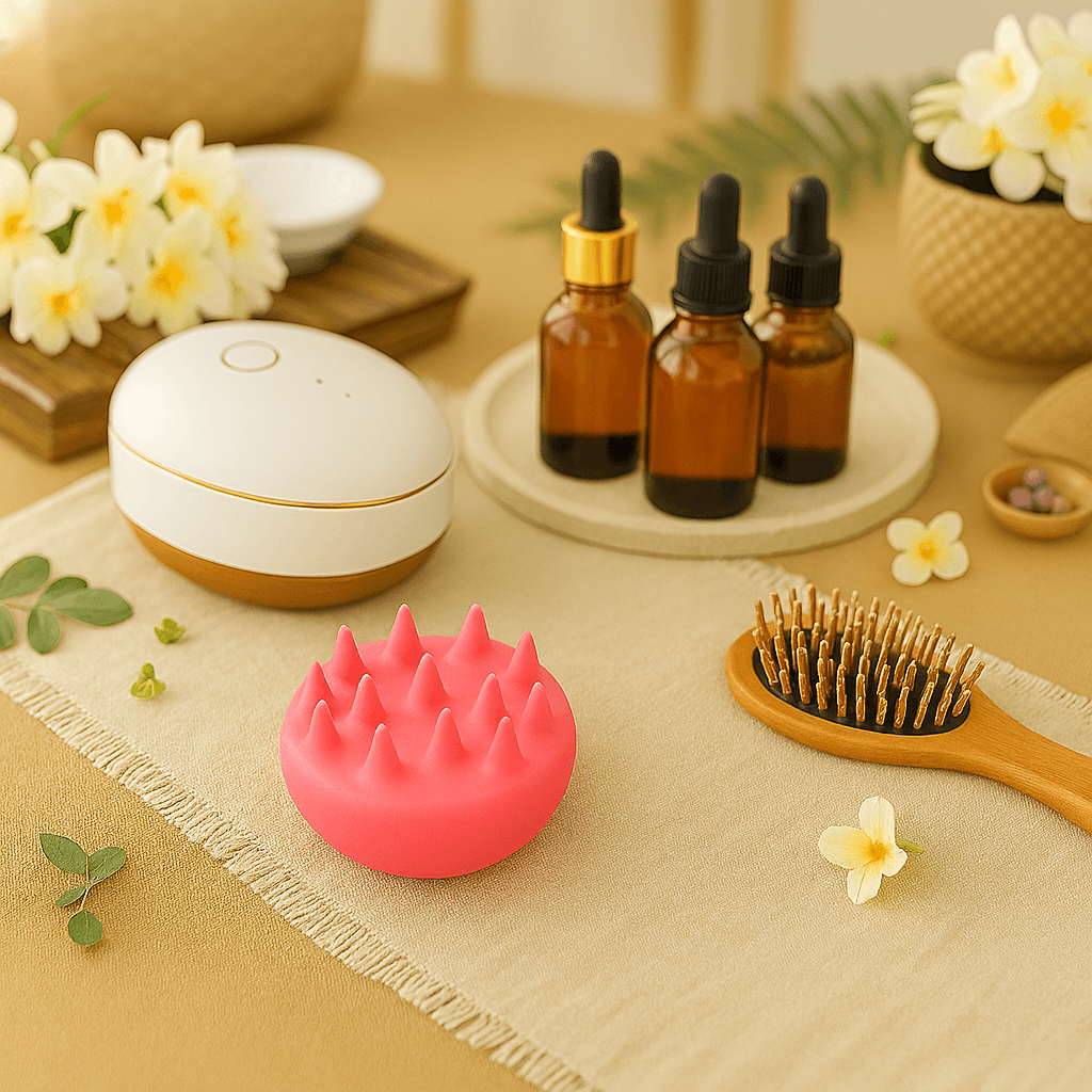 Apart from your hands, you can use silicone scalp massagers, handheld vibrating massagers, or even a soft-bristled brush. These tools make the process easier and can boost relaxation.
